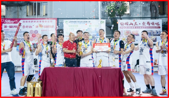 Song Shiqiang (in red) presenting awards to the championship team of the "Slkor" Cup Basketball League