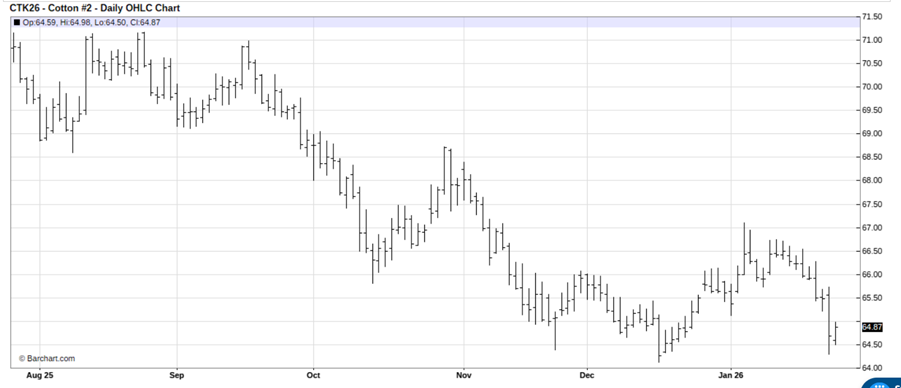 May cotton futures (CTK26) present a selling opportunity on more price weakness.