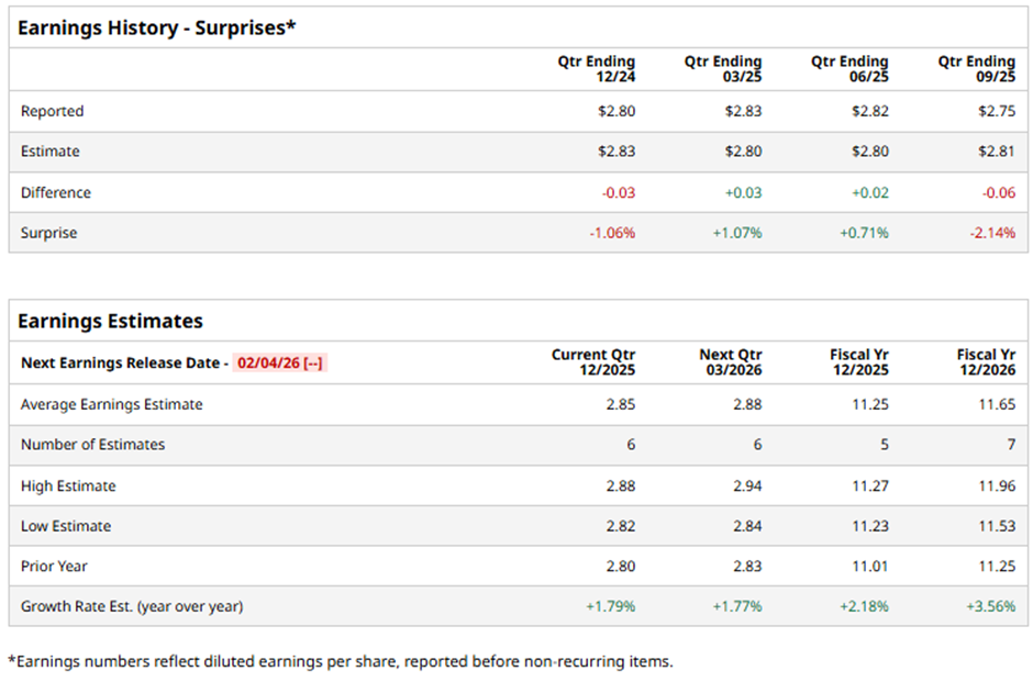 The Arlington, Virginia-based company is set to announce its fiscal Q4 2025 results soon. Ahead of this event, analysts predict AVB to report a core FFO of $2.85 per share, a 1.8% rise from the $2.80 per share in the year-ago quarter. It has surpassed Wall Street's bottom-line estimates in two of the past four quarters while missing on two other occasions.
