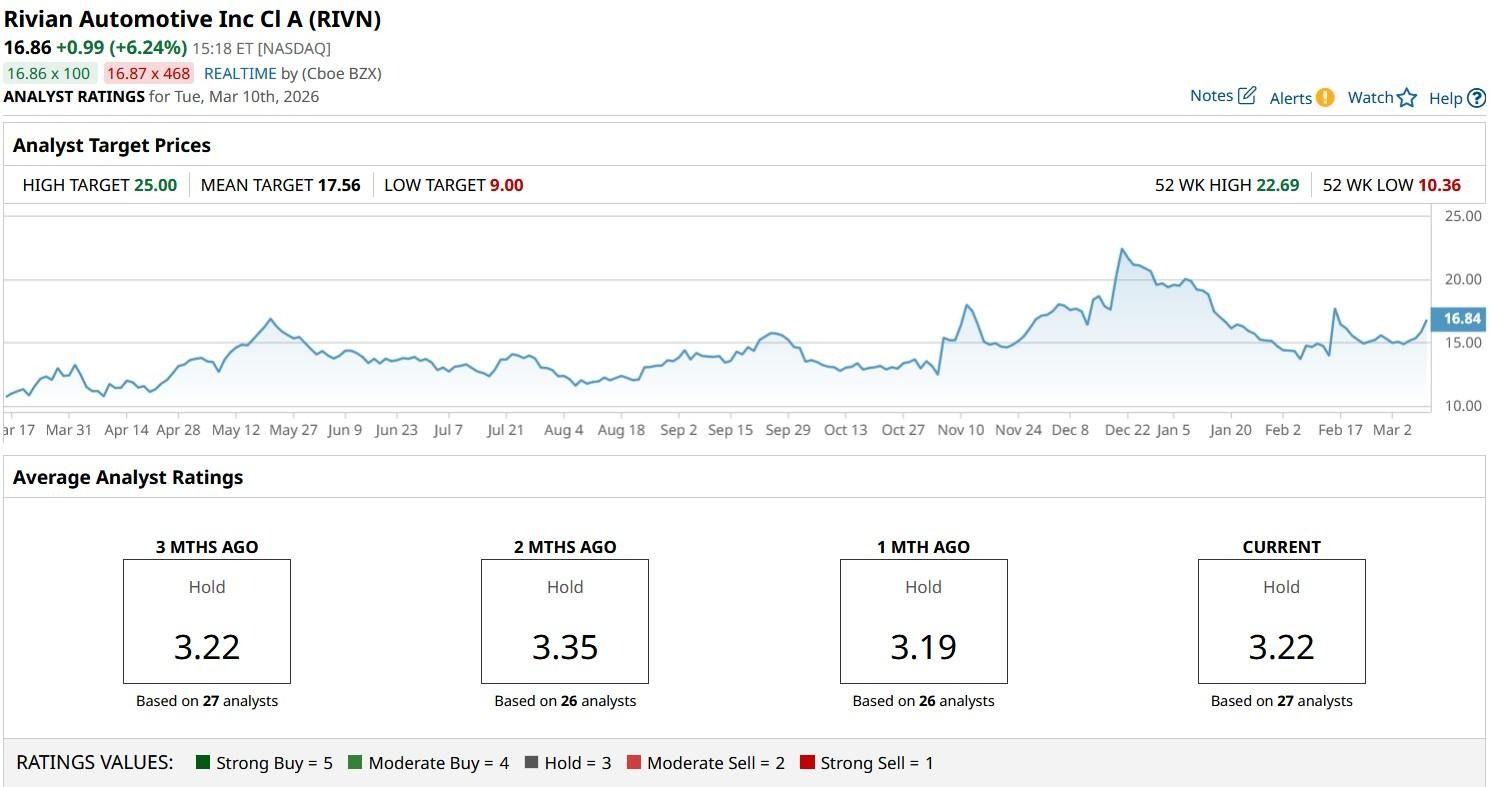Heading into the R2 launch on Thursday, Wall Street has a consensus “Hold” rating on RIVN shares.