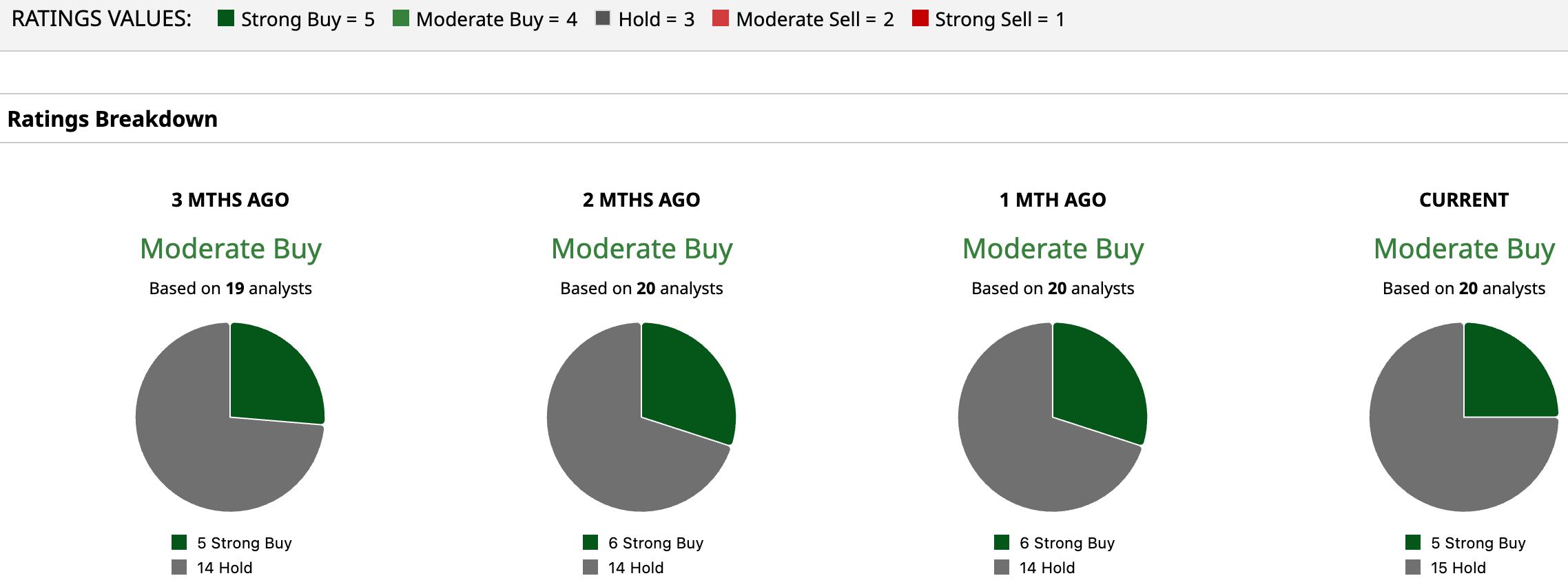 Wall Street analysts are soundly bullish on DocuSign’s stock, with analysts awarding it a consensus “Moderate Buy” rating. Of the 20 analysts rating the stock, five analysts have given it a “Strong Buy” rating, while 15 analysts are playing it safe with a “Hold” rating. The consensus price target of $79.19 represents 63.2% upside from current levels. The Street-high price target of $124 represents a 155.6% potential upside.
