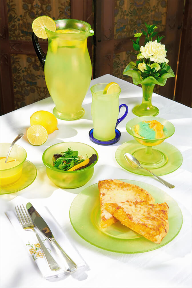 Right at the entrance, visitors are greeted by a vibrant display of stretch glass in its most beloved and functional forms, including: