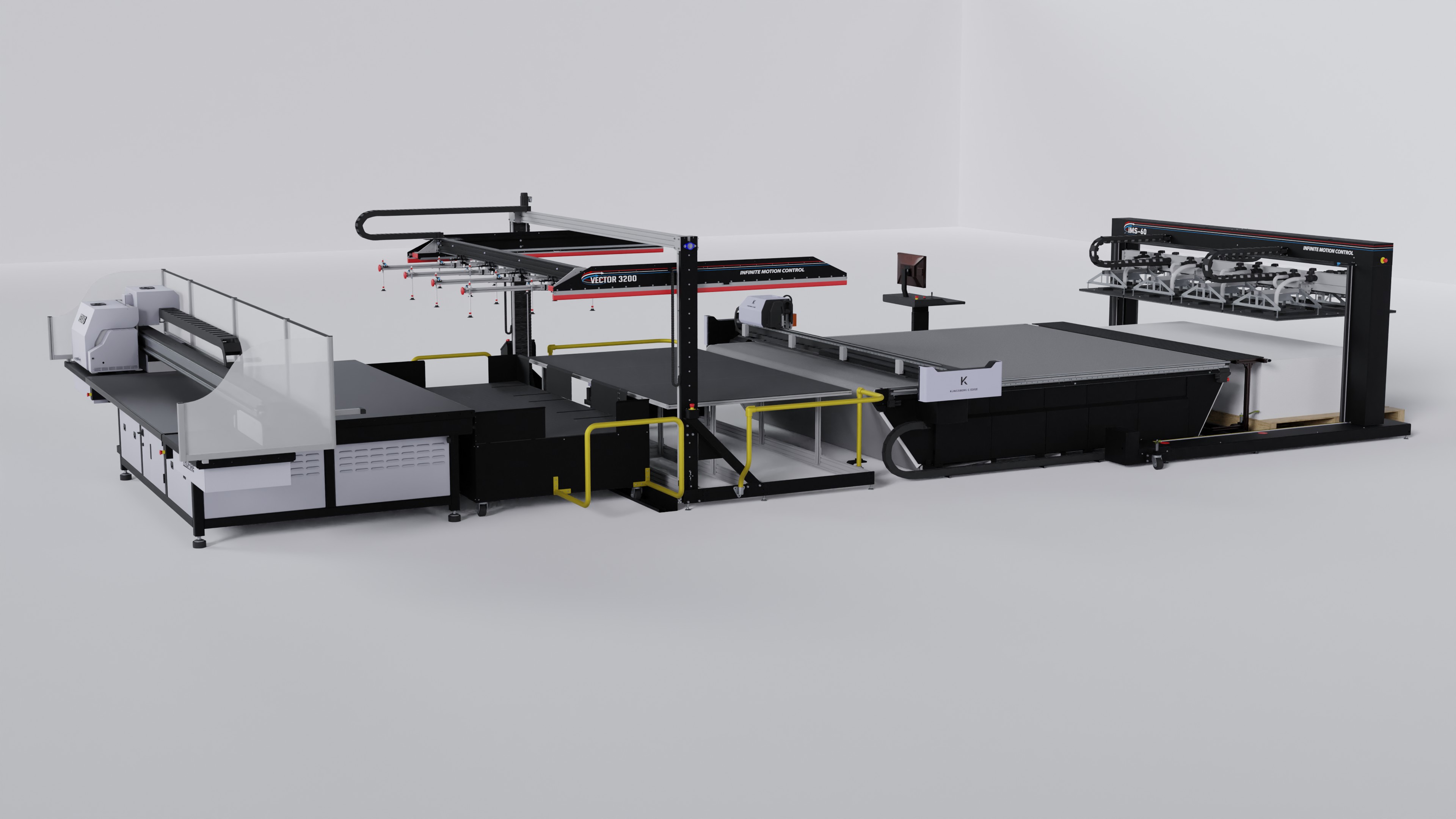 Once the cut is complete, the iMS60 Cutter Stacker picks it up from the Kongsberg C64 Cutter and moves it onto a pallet, ensuring the operator simply needs to load the material onto the printer, with the solution taking care of the rest of the process until the materials are placed onto the pallet.