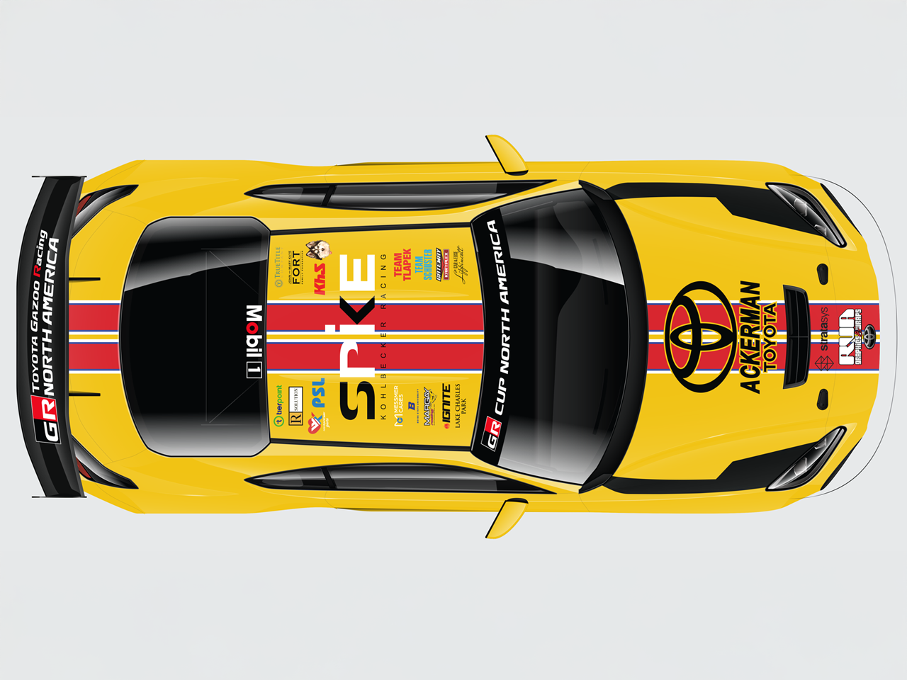 Look for the distinctive and powerful Vanguard engines' yellow and black livery on Kohlbecker’s #55 Toyota GRCup North America car for the 2025 season: