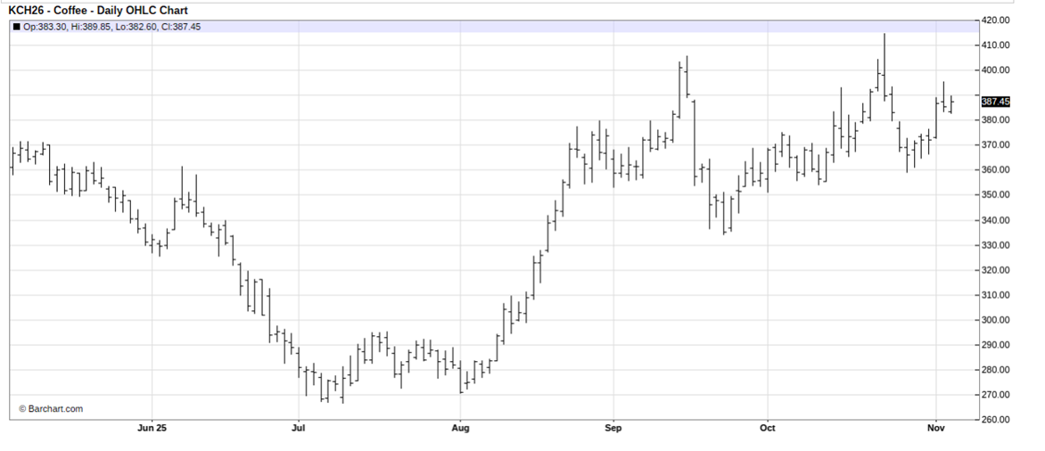 March coffee (KCH26) futures present a buying opportunity on more price strength.