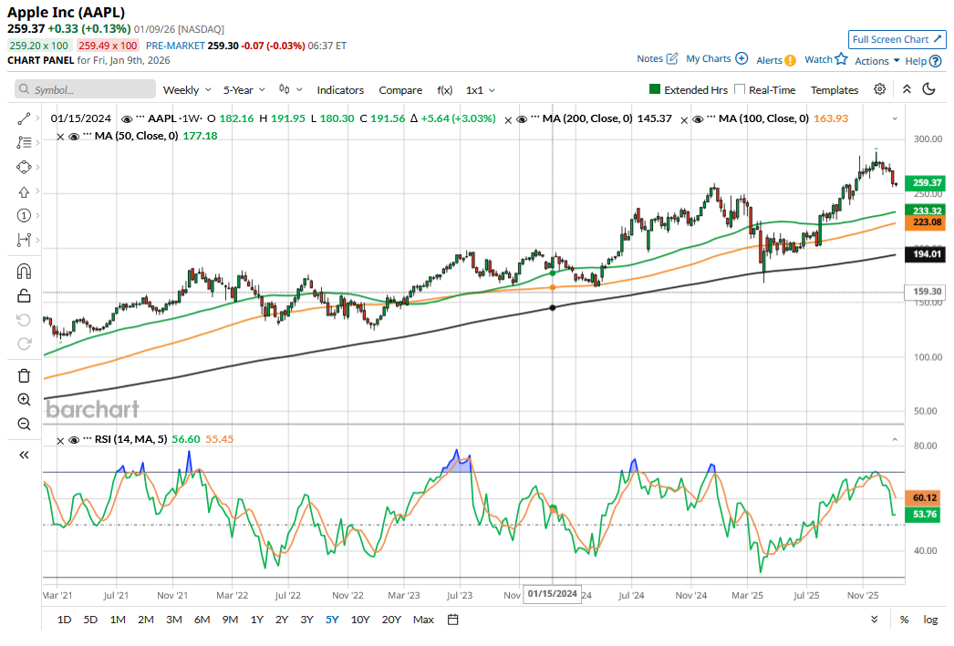 Meanwhile, it appears to be déjà vu for AAPL stock this year, as it received a downgrade from Raymond James at the start of the year. The brokerage sees Apple’s valuations as stretched and believes that the strength in iPhone 17 sales is priced into the stock. This is, incidentally, the third consecutive year that Apple has been hit with downgrades at the beginning of the year.