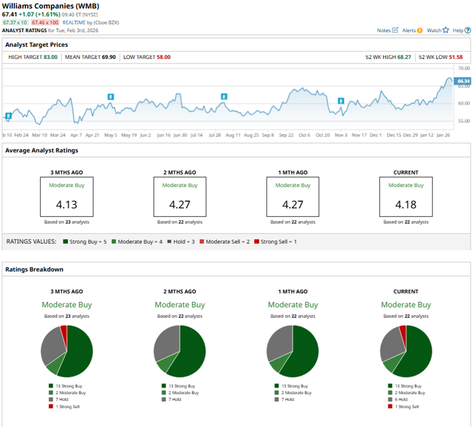 On Feb. 3, Jefferies raised its price target on Williams to $76 and maintained a “Buy” rating.
