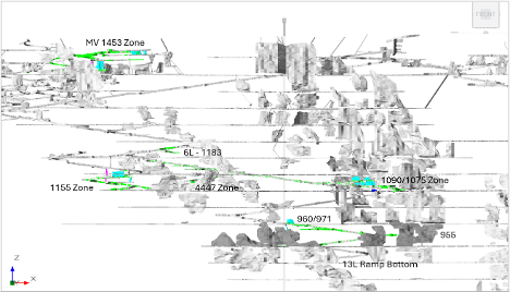 Historic stopes near current mining areas on the 9 level in Austin and South Austin collectively offer space to hold over 70,000 tonnes of waste rock. Additional large voids closer to surface in the upper Austin area offer potential to hold 102,000 tonnes of waste rock. Moving waste rock from where it is generated underground to these voids, rather than to surface, will free up significant haulage capacity.